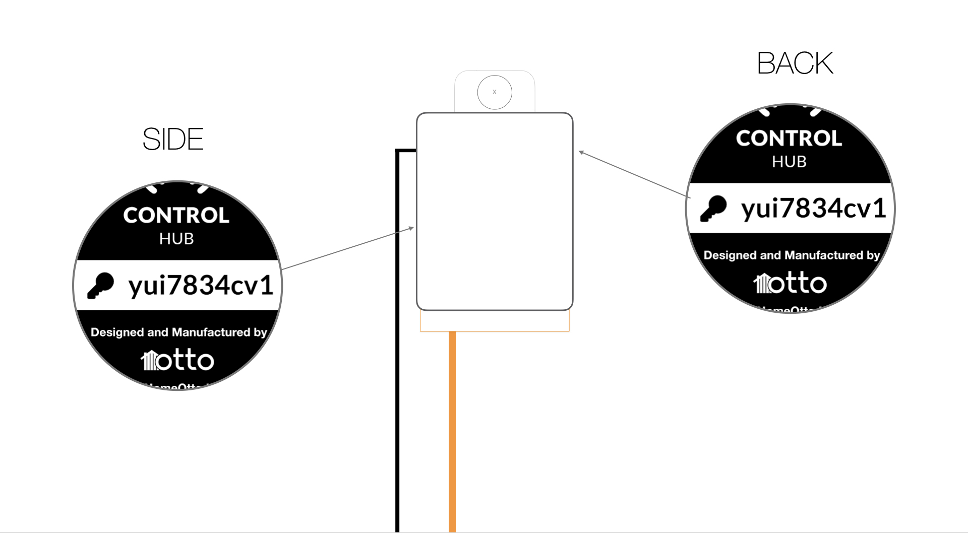 Your hub key is the access point to your home, you will need to to insert this key when you first set up your otto smart home. The hub key can be located on the side and back of the control hub located next to you electrical box.